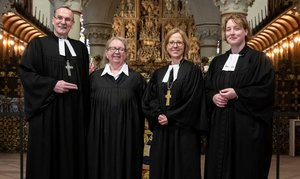Hanerau-Hademarschen – Viele Menschen in der Kirchengemeinde Hademarschen kennen Christiane Schulz schon aus dem Kindergarten, denn da ist sie seit Jahren tätig. Andere kennen sie aus der Arbeit mit den Konfirmandinnen und Konfirmanden oder aus vielen anderen Bereichen der Gemeindearbeit. Nun hat sie auch noch einen ganz besonderen ehrenamtlichen Auftrag in der Kirchengemeinde: Nach einer dreijährigen berufsbegleitenden Ausbildung wurde Christiane Schulz, die auch Synodale im Kirchenkreis ist, am Sonntag (8. März) als Prädikantin durch Bischöfin Nora Steen im Dom zu Schleswig in ihr Amt eingeführt.