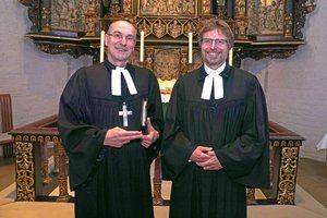 Rendsburg – Neben vielen Formalien, Zahlen und Wahlen ging es bei der Kirchenkreissynode auch um das Reich Gottes. Denn bevor die Jahresrechnung besprochen und die Situation der Pfarrstellen erörtert wurde, führte Propst Matthias Krüger in der Kirche St. Marien Rendsburg Lutz Thiele in sein Amt als Vertretungspastor ein. Dies füllt er mit einer halben Stelle aus, mit dem anderen Teil arbeitet er als Pastor für Personal- und Gemeindeentwicklung. Thiele nahm für seine Ansprache den Monatsspruch aus dem Lukasevangelium als Ausgangspunkt, mit dem Präses Maike Tesch die Synodalen eingeladen hatte: „Seht, das Reich Gottes ist mitten unter euch.“