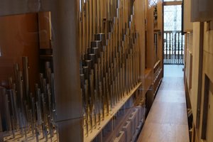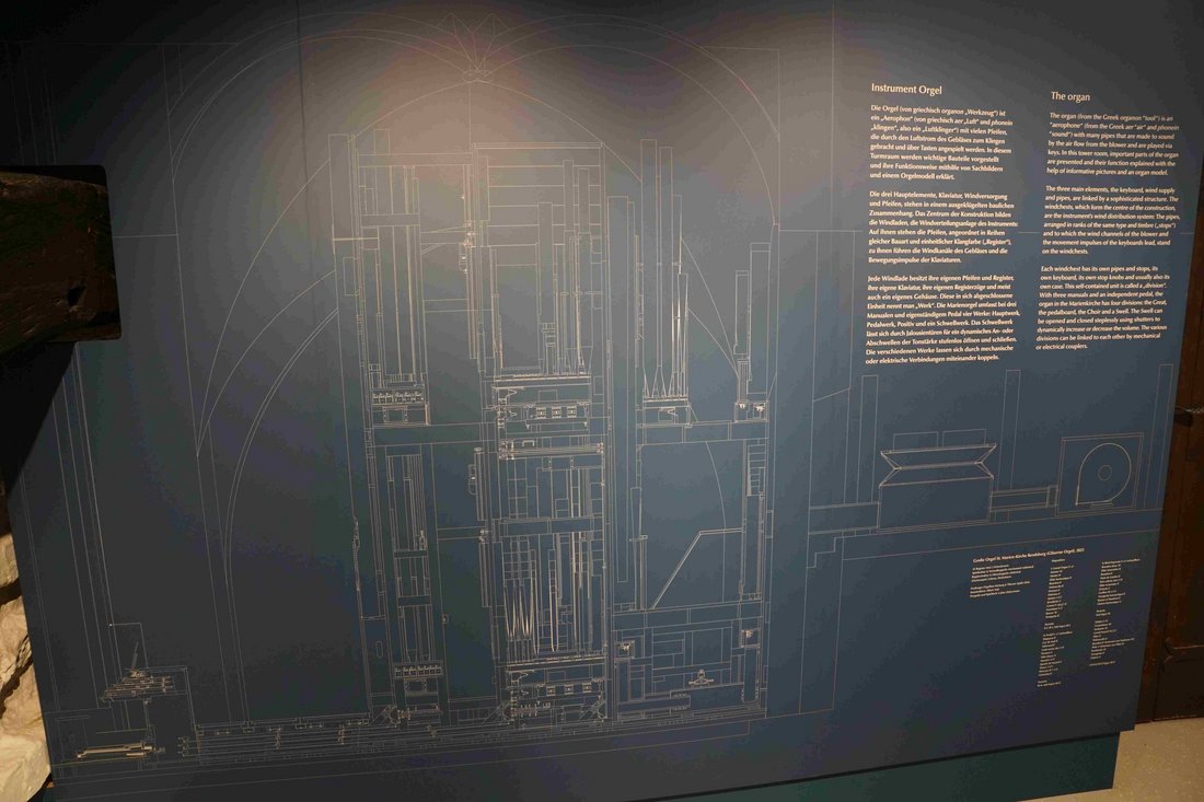 Besucher können künftig durch die Orgel hindurch gehen und über mehrere verglaste Öffnungen die Mechanik genauer betrachten. Im Turmraum hinter der Orgel sind unter andere, der Motor und der Magazinbalg offen zu sehen. Für Kurator Neumann war es eine besondere Herausforderung, die Ausstellung in der Kirche so einzurichten, dass der kirchliche Charakter gewahrt bleibt. Astrid Becker von der Agentur Drej, die die Ausstellung gestaltet hat, sagt, dass der Platz begrenzt war, auf dem viel Information präsentiert werden sollte. „Unser Ziel war es, die Orgel mit allen Sinnen erfahrbar zu machen.“ So gibt es neben der Geschichte des Orgelbaus auch in einer Hörstation Musikbeispiele aus allen Epochen der Kirchen- und Orgelmusik. Zudem gibt es in der Ausstellung Einblicke in die Technik, den Aufbau der Orgel sowie den Bau der Gläsernen Orgel selbst.