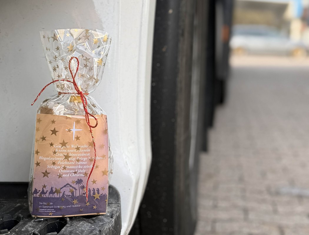 Die Männer, die in den LKWs unterwegs sind, leben dort meist über Wochen und Monate auf engstem Raum. Die Wochenenden verbringen sie auf den Rasthöfen, in prekären Verhältnissen. Sie kochen, waschen, leben dort. Und unter der Woche ständig im Stress. Ein Knochenjob für die Konsumgesellschaft. Einer der Fahrer erzählte, dass er die harte Arbeit nicht mehr lange durchhalte. „Mein Körper ist krank. Ich kann nicht nur von Energydrinks leben, um wach zu bleiben“, sagte er. In seinem kleinen Pritschen-LKW hat er kaum Raum für sich selbst. Die Freude über das kleine Geschenk der Pfadfinder, über den Weihnachtssegen ist bei ihm groß. Auch die Augen der anderen Fernfahrer leuchten. Nach anfänglicher Skepsis, was diese bunte Gruppe mit Stern und Weihnachtsmütze von ihnen will, merken sie: Hier kommt keine Zollbehörde, keine Polizei, sondern einfach nur Menschen, die sagen: Wir sehen dich.